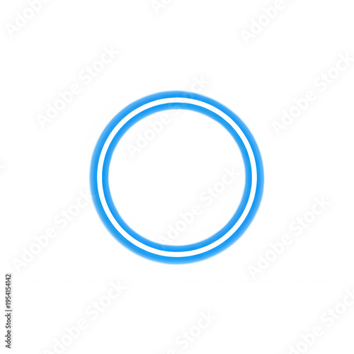 Glowing blue neon ring with inner white light on transparent background