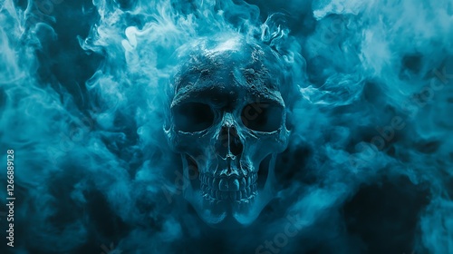 Glowing Blue Skull Emerging from Mysterious Smoke