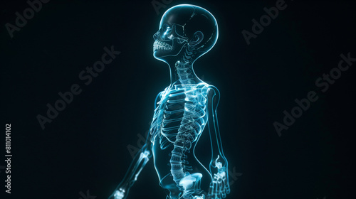 Glowing Blue X-ray of Human Skeleton on Dark Background