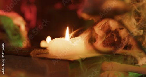 Glowing Candle with Mysterious Smoke and Halloween Colors