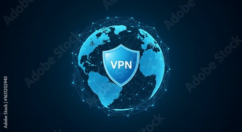 Glowing Digital Globe with VPN Shield Symbol Representing Global Cybersecurity