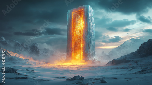 glowing door made of ice