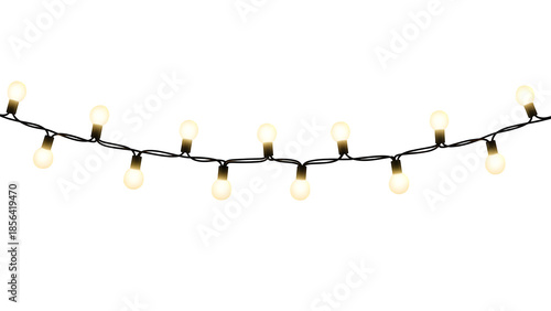 Glowing festive string lights, perfect for holiday designs, decorations, and celebrations. Isolated on white or transparent background. PNG format.