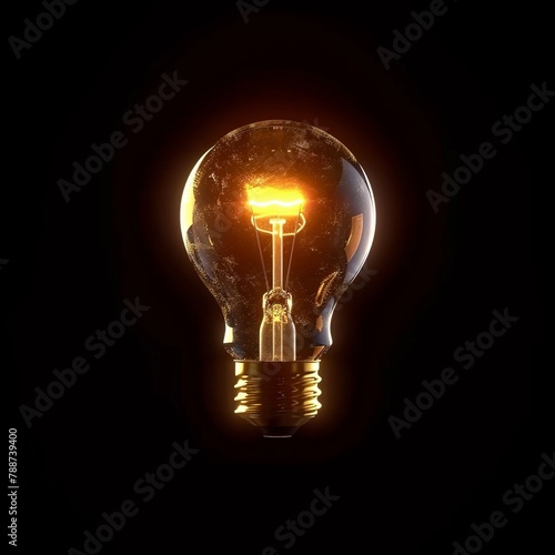 Glowing Filament: Tungsten Light Bulb Illuminated Against Black Background
