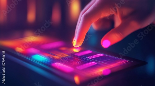 Glowing Hand Interacting with Digital Interface on Tablet, Technology , UI Design