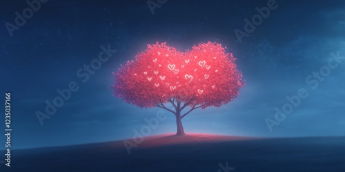 Glowing Heart Tree Under Starry Night Sky