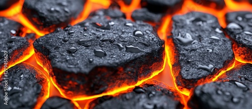 Glowing Hot Rocks with Water Droplets