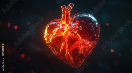 Glowing human heart in digital illustration.