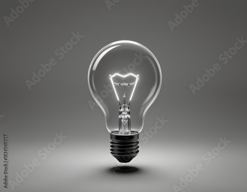Glowing Light Bulb on a Minimalist Gray Background Symbolizing Ideas and Innovation