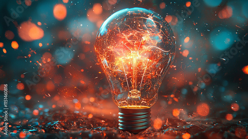 Glowing Lightbulb Idea Innovation Energy Spark Fire Abstract Background