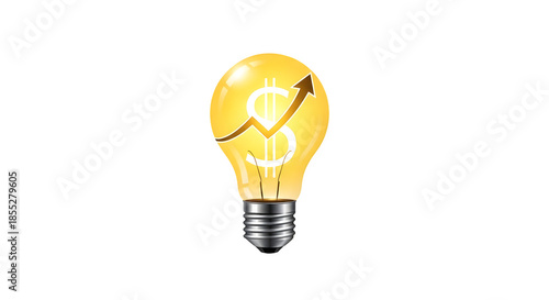 Glowing lightbulb with upward arrow inside representing growth isolated on transparent background