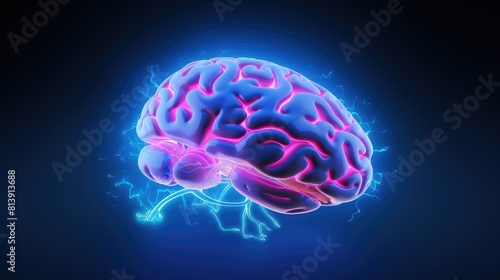 glowing neon human brain on dark blue