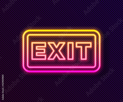 Glowing neon line Fire exit icon isolated on black background. Fire emergency icon. Vector
