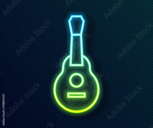 Glowing neon line Mexican guitar icon isolated on black background. Acoustic guitar. String musical instrument. Vector.