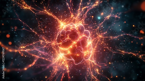Glowing network with connections, energy, tech, science