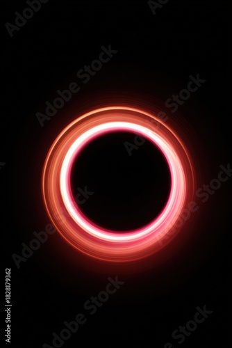 Glowing red ring in darkness with vibrant light trails
