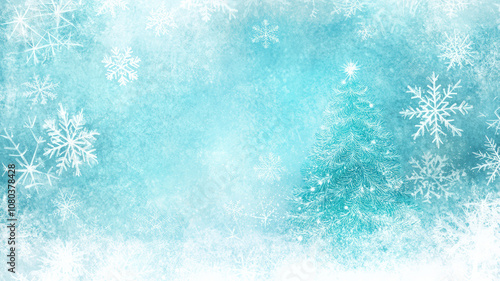 Glowing snowflakes and Christmas tree on blue