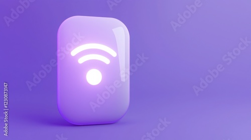 Glowing Wi-Fi symbol on a sleek, purple device. Modern technology concept. Wireless connection.