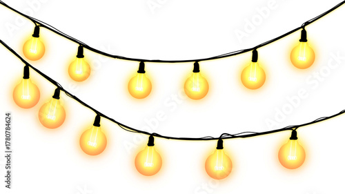 Glowing Yellow-Orange String Lights on Black Background – Festive Hanging Bulbs for Holiday Decoration
