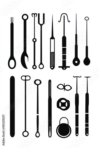 Glyph icon representing surgical instruments, detailed for medical use.