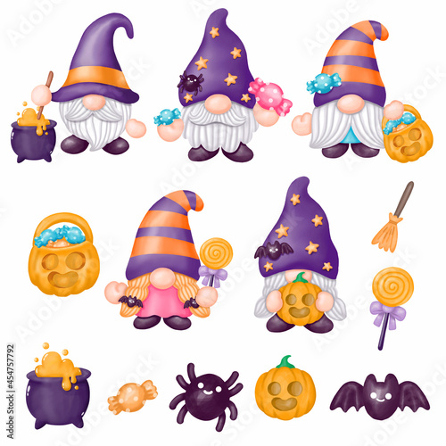 Gnomes Halloween Clipart, wizard witch Halloween Event, watercolor Digital painting