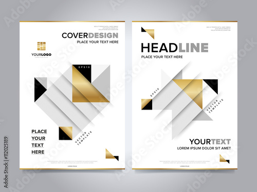 Gold annual report design template vector. Brochure cover presentation abstract flat background. Leaflet layout. Corporate document.