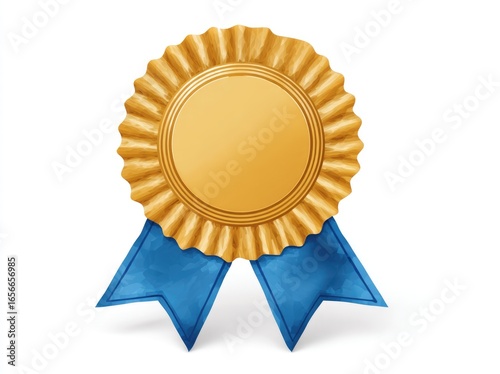 Gold award medallion with blue ribbon