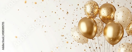 Gold balloons, confetti, celebration, party decor, festive decoration, luxury event, golden hues on a neutral background Perfect for celebrations and special occasions