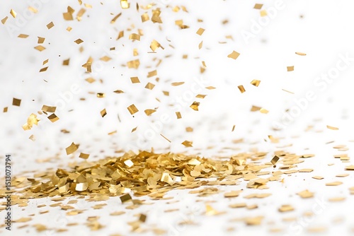 Gold confetti is falling from the sky