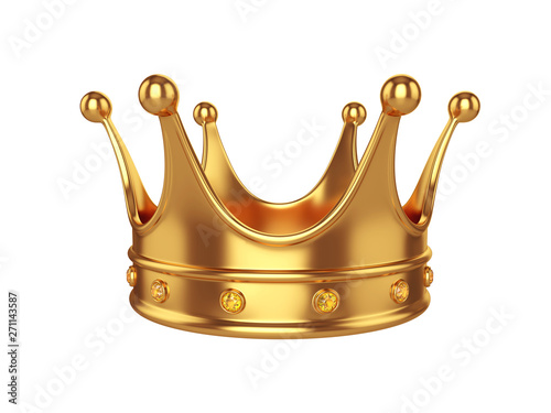 Gold crown with precious stones isolated on white background, 3D rendering