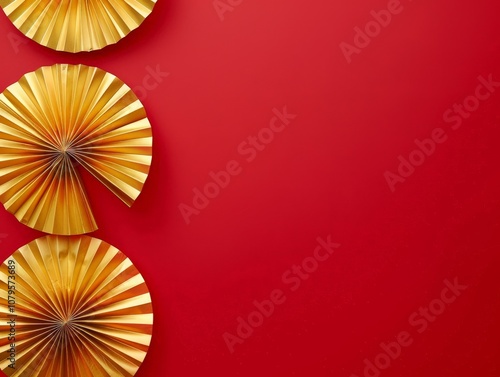 Gold Fans on Red Background