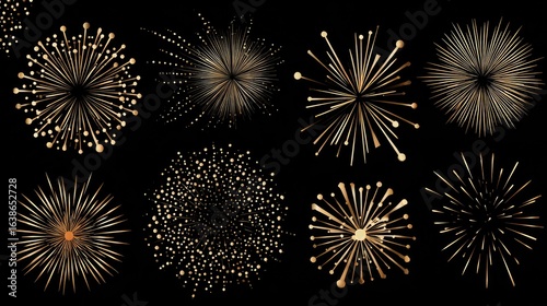 Gold firework bursts on black background