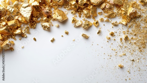 Gold flakes scattered on white background (1)