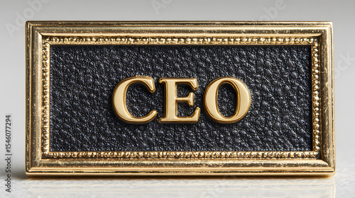 Gold Framed Black Plaque C E O Embossed Letters black background
