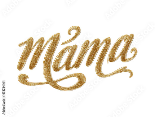 Gold Glitter Mama Lettering on Transparent Background, PNG