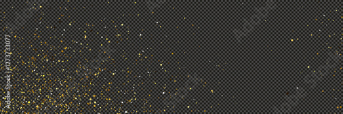 Gold glittering dust with stars on transparent backdrop
