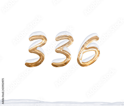 Gold Number 336 with Snow on white background