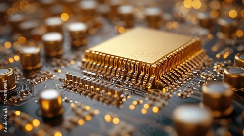 Gold Pin On Electronic Circuit Board Close-Up, Intricate Data Transfer Connector With Reflective Surface