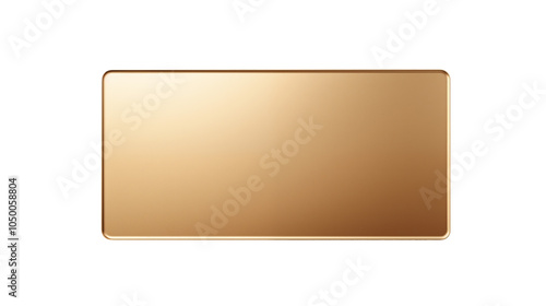 Gold rectangular metal tray, lying on transparent background, top view