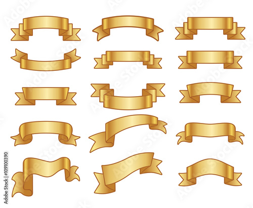 Gold ribbon banners. Gold ribbon decoration and ribbon banner set vector