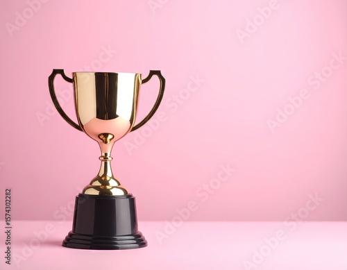 Gold trophy on pink background (2)