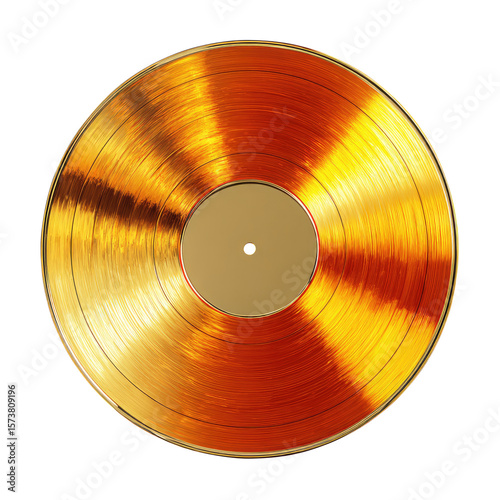 Gold Vinyl Record with Shiny Reflection isolated on transparent white background, clipping path