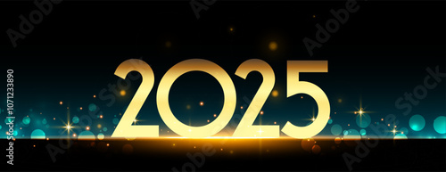 golden 2025 new year festive banner with light effect