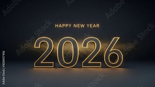 Golden 2026 New Year Celebration Text with Sparkling Background