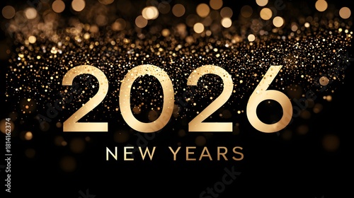 Golden 2026 new years eve celebration with sparkling bokeh lights