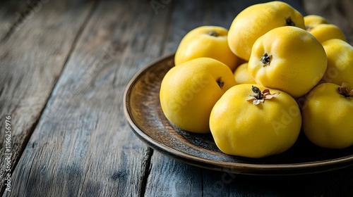 Golden Apples Resting On A Rustic Wooden Table