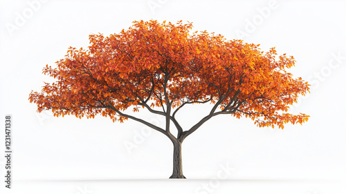 golden autumn maple tree with striking orange and red leaves,