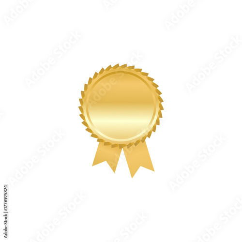 Golden Award Medal with Ribbon for Achievement, Recognition, and Success - Isolated on White