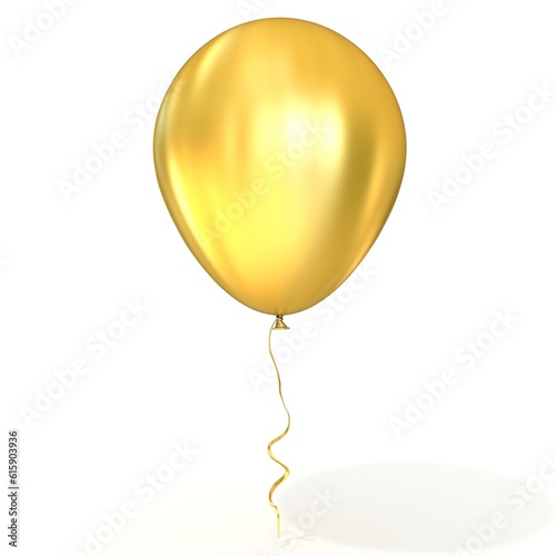 Golden balloon with ribbon, isolated on white background