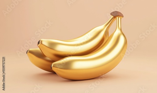 Golden bananas on peach background, minimalist still life, food photography, website design